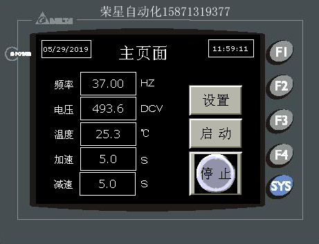 臺達PLC與觸摸屏,變頻器通信,設置頻率,加減速時間。顯示直流母線電壓,溫度。