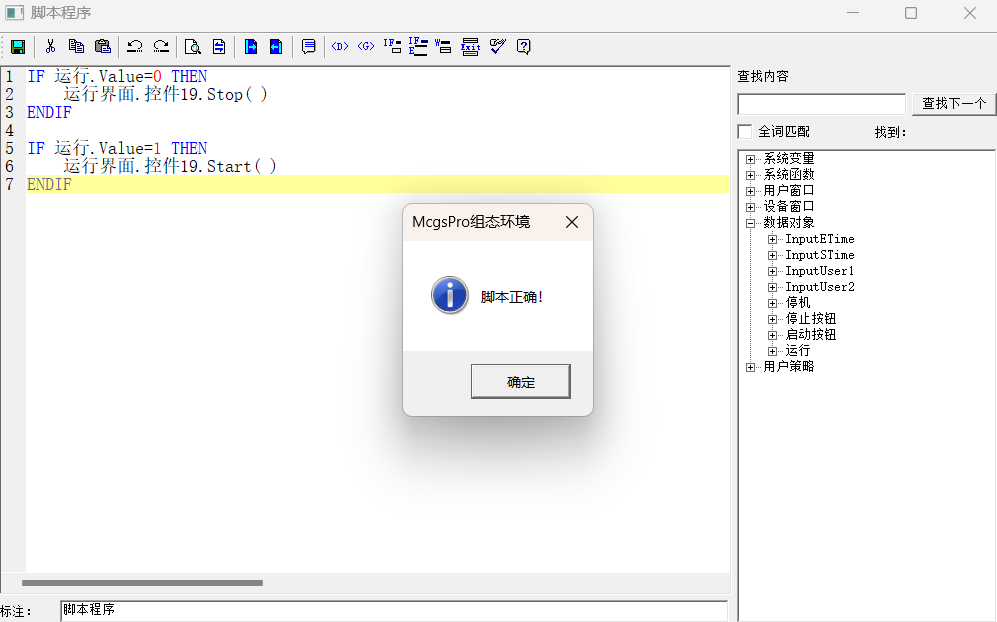 我寫了一個起保停程序,想要的效果是,當運行=0的時候,GIF的動圖停止播放,當運行=1的時候,GIF的動圖開始播放。下圖是我寫的這個腳本,腳本沒有問題但是達不到我要的效果,就是前面的那個效果,第一次寫這個MCGS觸摸屏的腳步不知道哪里錯了,求大佬指點一下,謝謝啦!