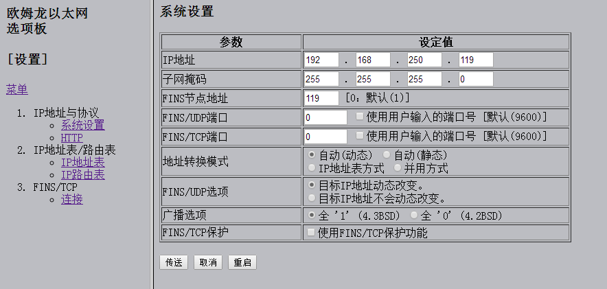 在選擇協議的時候不要使用Ethernet(Fins/tcp)這個選項     你選Ethernet那個選項,然後在設置裡面直接填入IP地址就可以了。