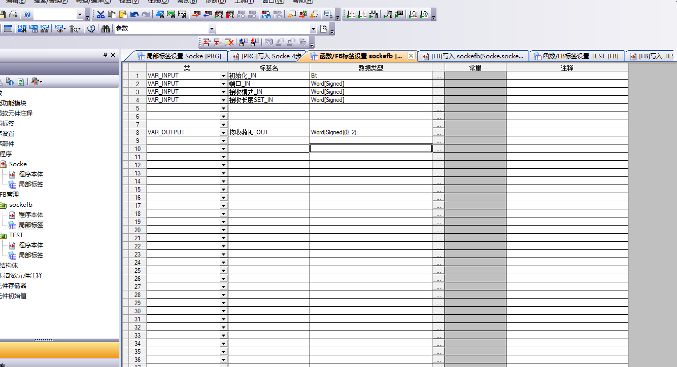 GX works 2只是梯形圖不支持FB里使用數組作為輸入輸出,因為梯形圖編程其實沒有數組的定義,只有偏置值,編譯的時候梯形圖編譯的時候其實并不知道每一個數組的元素具體是占用了多少個地址,也就是說偏置值編譯的時候確定不了數值,所以就編譯不過去;用ST語言或FBD是完全沒有問題的
