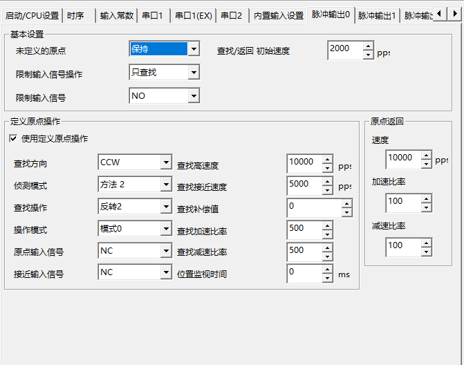 沒有使用原點接近信號  限位和原點信號都是常閉的  現在點擊找原點  可以移動  原點信號接通后 當前位置也變位0,但電機繼續向前移動,但是如果在搜尋原點過程中提前擋一下原點 那么電機第二次到達原點就會立刻停止  無原點信號斷開   以后手動離開原點后再點擊搜尋原點   也能正常停下來