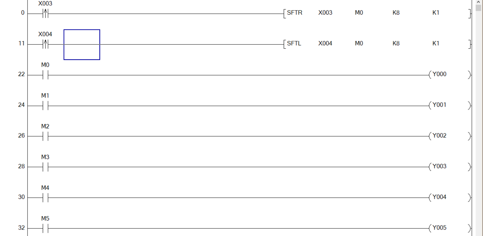 剛學三菱的位左移和位右移,有個問題不明白,我的程序中位右移如果M0到M7全部為1的時候也就是全部接通后,位左移X04按下后還是全部接通的狀態,左移不移位,沒有熄滅的情況,如果X4位左移全部移位,置位1全部接通,位右移也不移位,假如位左移和位右移剩余一個位置位的話,無論左右移位都可以移位,全部置位左右移位都不能用,什么原因,大神指教,謝謝