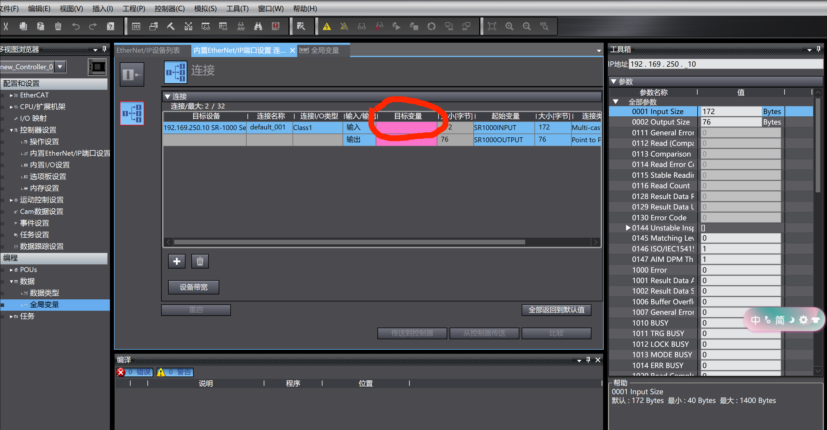 如圖片,歐姆龍和EIP傳感器通訊,目標變量怎么寫,從哪里看。