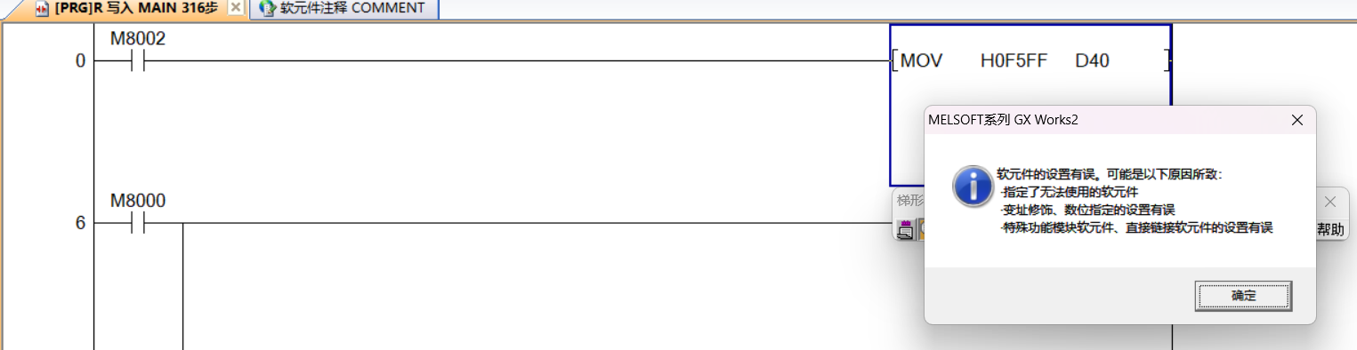 三菱FX3U模擬量輸入模塊程序,我實際上要輸入的是MOV HF5FF U0\G0,這個是三菱給的示例程序,我怎么輸入都提示錯誤,不知道錯在哪里,請大家幫忙看下。
